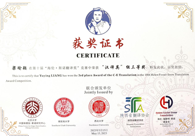 喜报|西译师生在第十届海伦·斯诺翻译大赛中荣获佳绩!